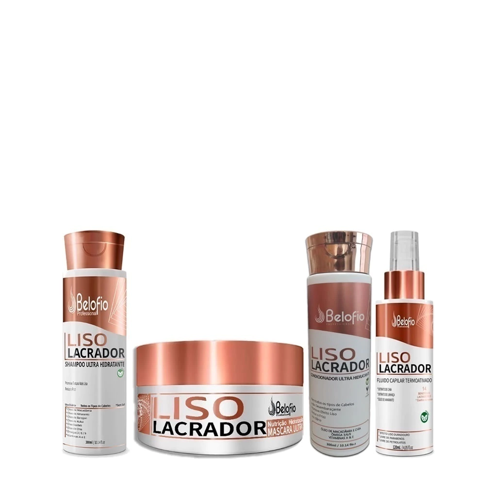 O Kit Liso Lacrador Belofio, tem uma fórmula suave e hidratante, prolonga o alisamento dos fios e forma um filme protetor que sela, remove o frizz, disciplina e ainda oferece brilho diferenciado.
