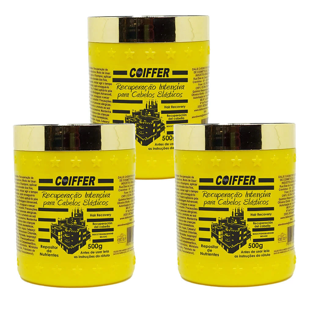 3 unidades da Recuperação Intensiva para cabelos elásticos Coiffer de 500g;