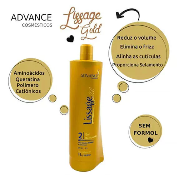 Kit lissage gold hair advance progressiva s/ formol 2 passos