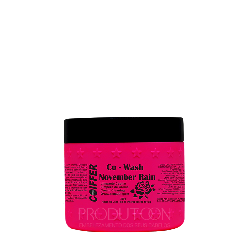 O Co-wash November Rain Coiffer tem o conceito americano COWASH é usada para lavar os cabelos usando apenas um shampoo condiciona,te. No Co-wash November Rain a formulação sem adição de silicones e óleo mineral. Limpa e hidrata sem ressecar.