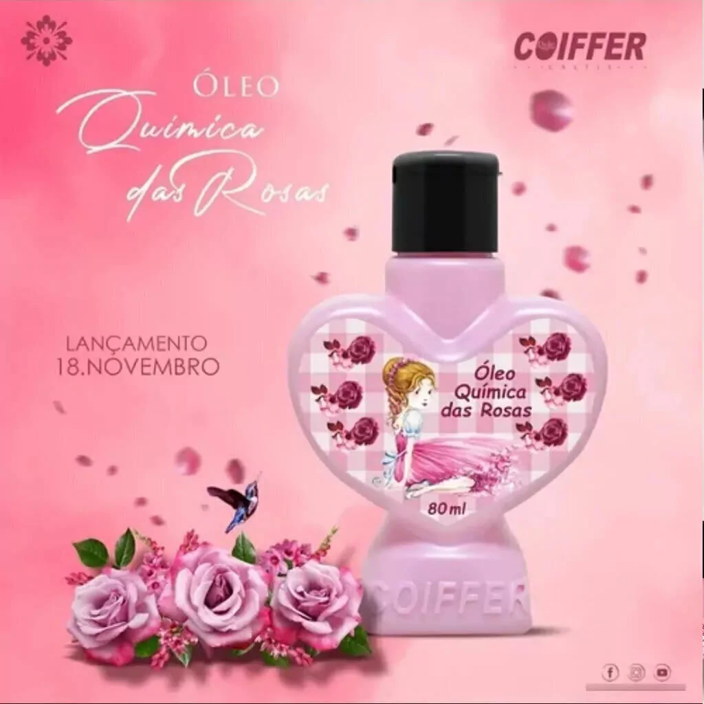 O Óleo Química das Rosas Coiffer tem a finalidade de recuperar os fios de danos extremos.